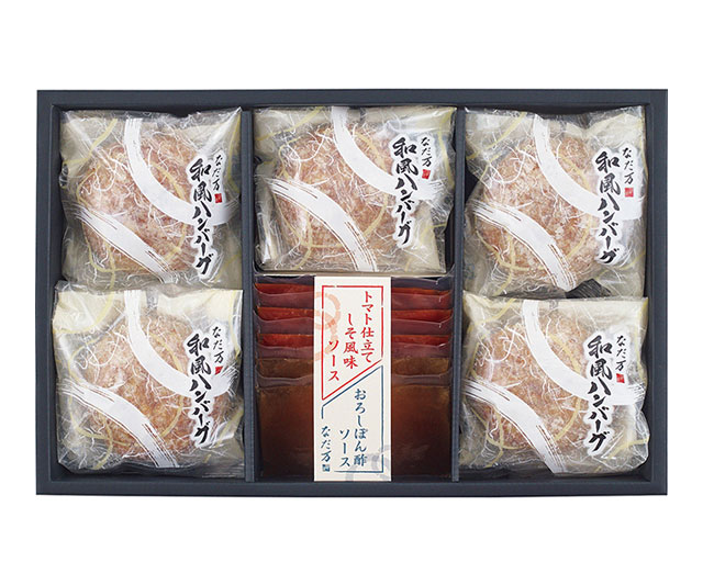 - 和風ハンバーグ135g×5、トマト仕立てしそ風味ソース×3、おろしぽん酢ソース×2、各50g