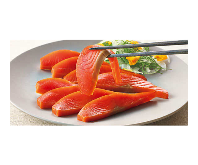 昔ながらの製法を守り、職人が直火燻製。脂がのった紅鮭本来の旨みを凝縮させ、しっとりと仕上げています。深みのある薫りと旨みをご賞味ください。