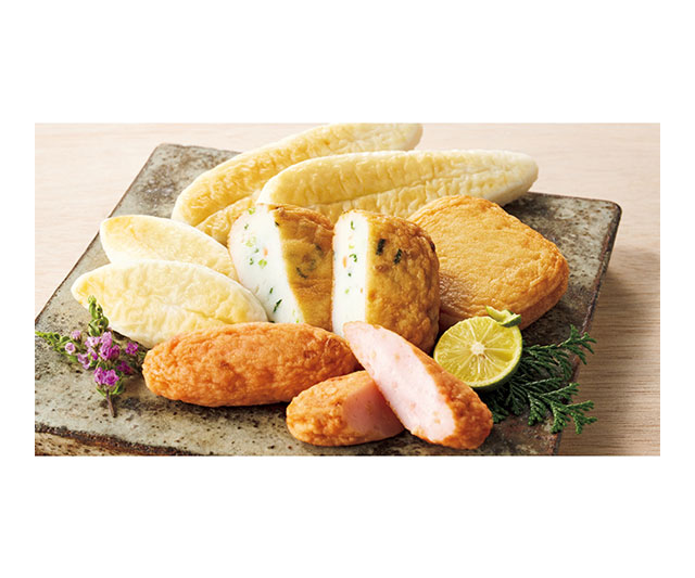 白身魚のキチジを用いてつくった笹かまぼこは、もちもちとした食感とほんのりとした甘みが特徴。野菜揚げなども入った風味豊かな詰合せです。