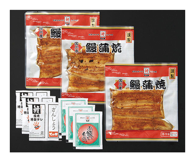 - 国産鰻蒲焼90g・吸物3.7g・タレ15ml(山椒付)×各3