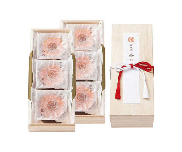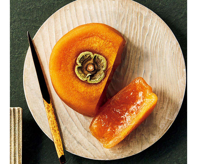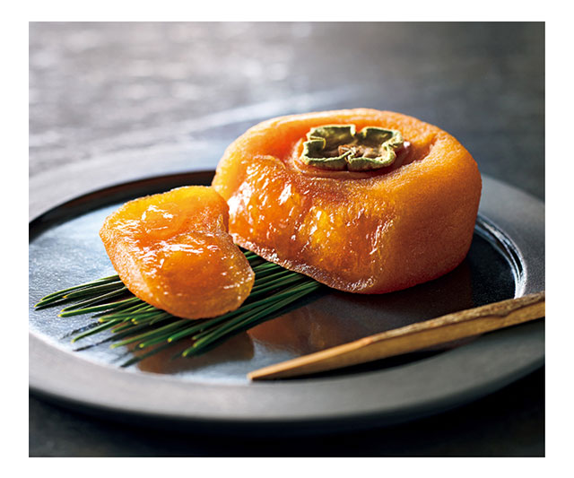 奈良・吉野の山で樹齢100年を越える柿の木から、一枝に1個の実だけを残して育てた柿をゆっくり渋抜き。とろりとした食感と濃厚な甘さが特徴です。