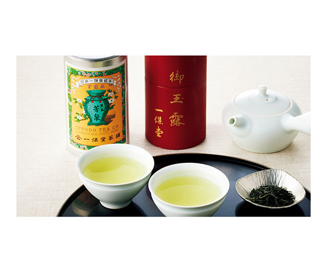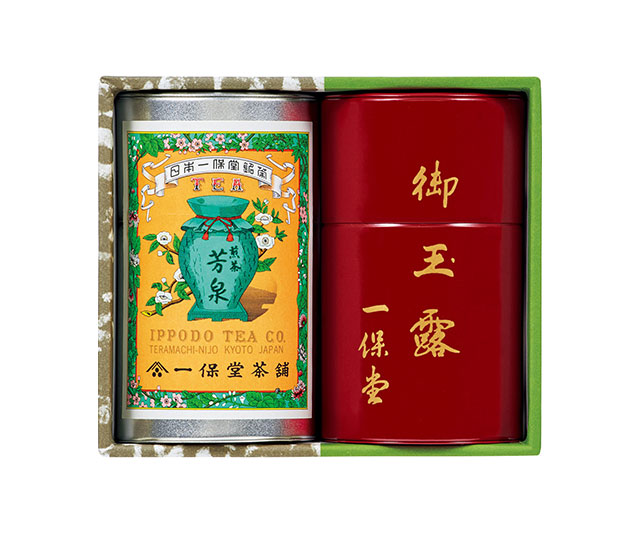 玉露「麟鳳(りんぽう)」は、ほろ苦さの中に爽やかな味と香り。煎茶「芳泉(ほうせん)」は、穏やかな口あたりが特徴の一品。贈答や祝いの席などにおすすめの京銘茶の詰合せです。