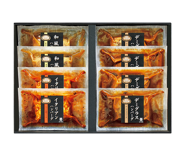 - デミグラスハンバーグ×4、イタリアンハンバーグ・和風ハンバーグ×各2、各150g