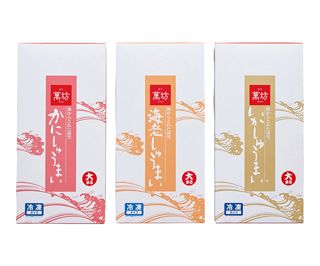 上品な甘みがふんわり広がる「いかしゅうまい」、プリプリした食感の「海老しゅうまい」、旨みあふれる身を贅沢に入れた「かにしゅうまい」のセットです。