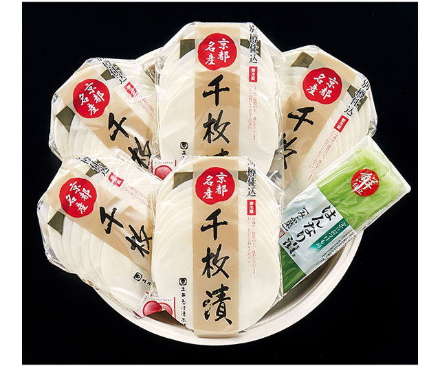 - 別樽仕込千枚漬×5、はんなり漬みぶ菜×1、各90g