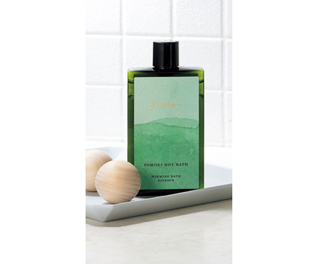 水や香料を使わず有機よもぎや和漢植物などのエキスのみで仕立てられたバスエッセンス。ヒノキボールのセットをご用意しました。