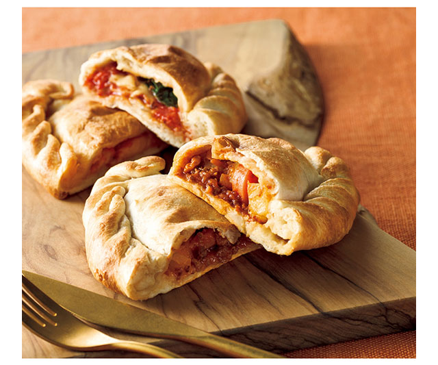 グリル野菜を入れた、もっちり食感の包み焼きピザ。