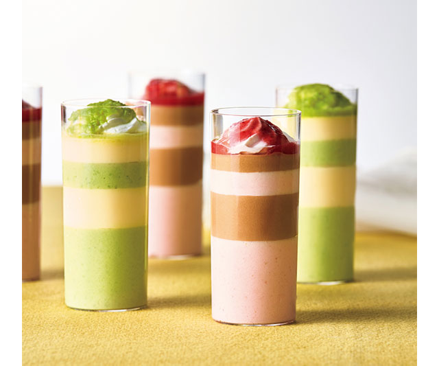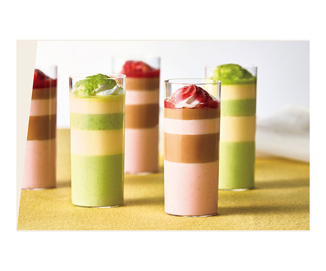 素材の風味をお楽しみいただける、2種のカップデザートをご紹介します。仙台名物「ずんだ」のムースには、市場に出回らなかった枝豆を使用。枝豆の風味とババロアのやさしい甘さが調和した、味わいのハーモニーをお楽しみいただけます。甘酸っぱい宮城いちごと、まろやかな甘さのチョコムースをあわせたフレーバーとのセットです。口の中でとろける、重なりあう美味しさをご堪能ください。