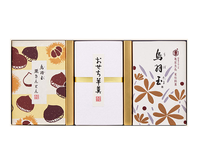- 烏羽玉(栗きんとん)・烏羽玉各6個入、おせち羊羹(半棹)