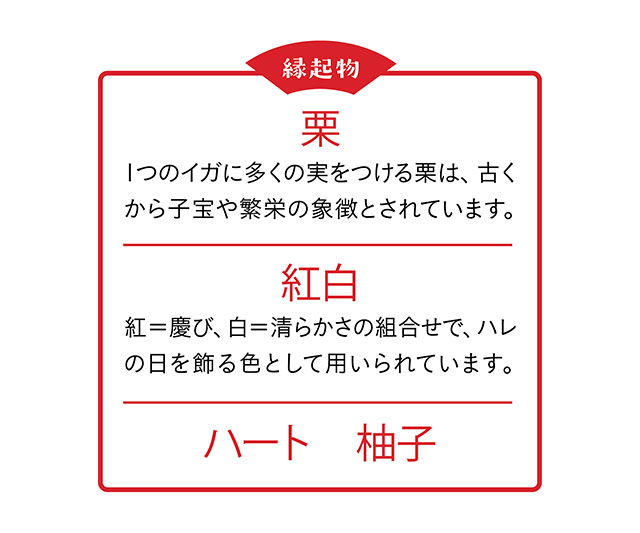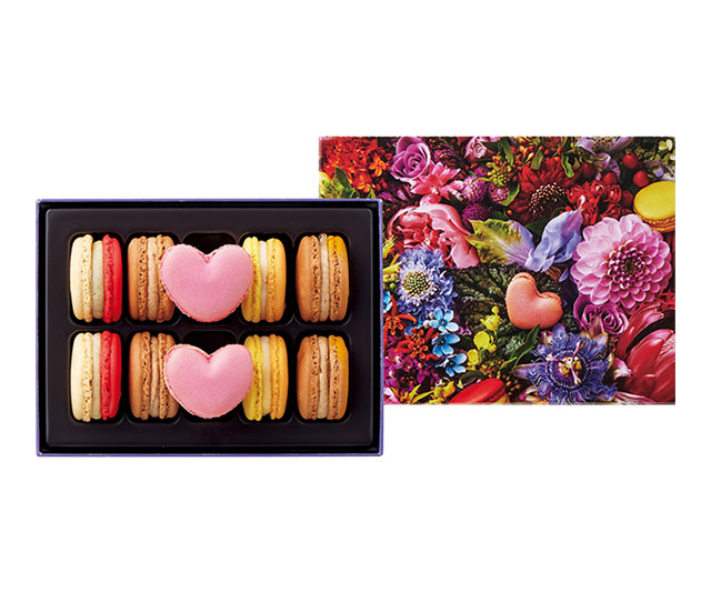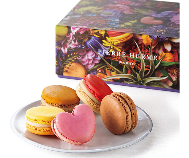 華やかな色合いが目を引く〈ピエール・エルメ・パリ〉自慢のマカロン。さくさくとした食感の生地と、なめらかなクリームが調和した上品な味わいが特徴です。今回は、縁起がよいとされる栗や柚子のマカロンをはじめ、おめでたい紅白の配色や愛らしいハート形など、見た目も楽しいマカロンを詰め合わせました。