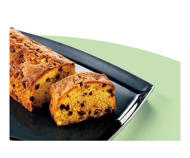 シナモンやナツメグなどのスパイスを生地に忍ばせた、しっとり食感のブランデーケーキ。オレンジピールやレーズンを入れて丁寧に焼きあげました。