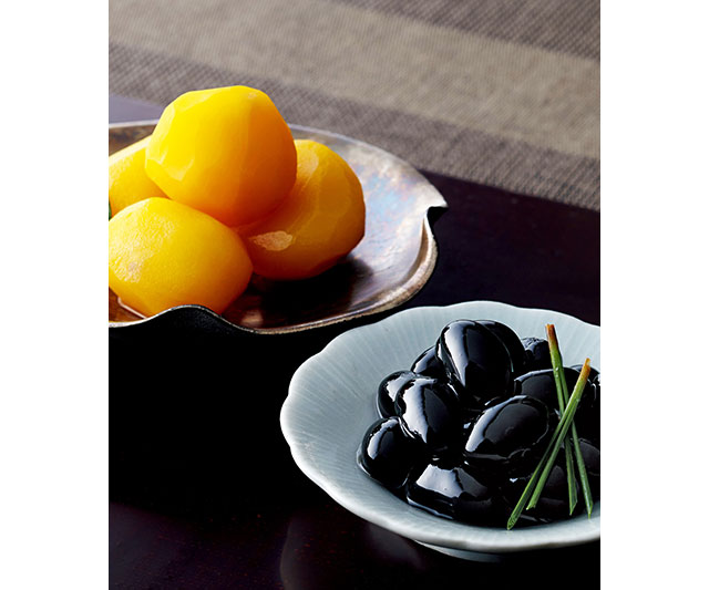 〈日本料理 神谷〉が監修した迎春セット。丹波篠山産のふっくらとした黒豆煮と、大粒の国産栗を使用した甘露煮を詰め合わせました。