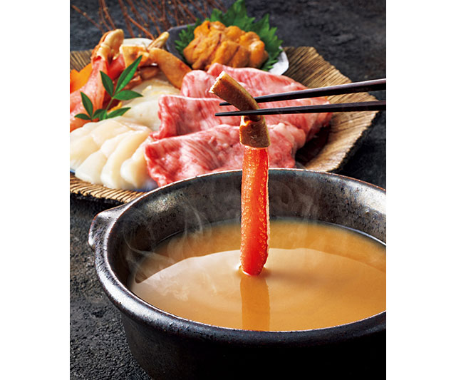 雲丹が香るだしで味わう贅沢なしゃぶしゃぶ。