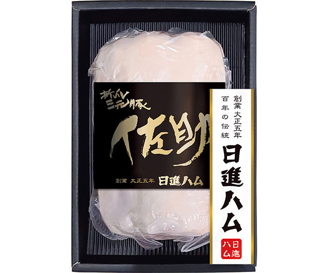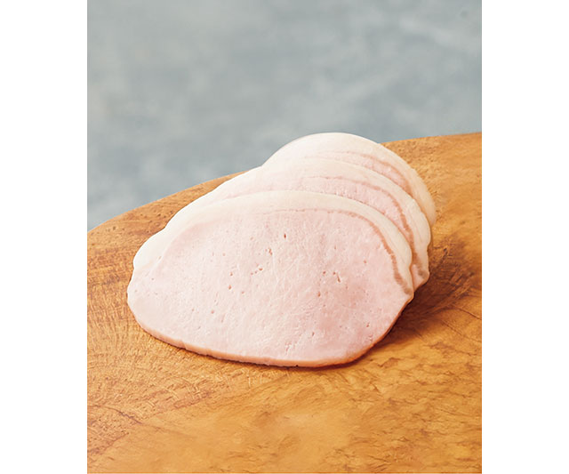 岩手県〈久慈ファーム〉の「折爪三元豚 佐助」で作ったロースハム。大正5年(1916年)創業の〈日進ハム〉が、伝統の技術でジューシーに仕上げました。しっとり柔らかな食感と、肉本来の旨みが味わえます。
