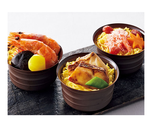 - 紅ずわいがにのおこわ・甘海老のおこわ・真鯛のおこわ×各2