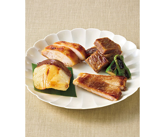 滋味深い旨みの真鯛、地鶏ならではの食感が楽しめる純系名古屋コーチン、なめらかな肉質のTOKYO X、美しい霜降りの飛騨牛。上質な食材に、それぞれの食味を最大限に引き出すために、きめ細かな下ごしらえをし、上品な甘みの西京味噌に漬け込みました。