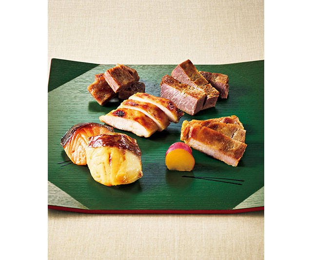 米麹をふんだんに使った柔らかい甘みが特徴の西京味噌。その西京味噌を味噌漬け用に調味して、山海の幸を漬け込みました。細やかな職人技で仕上げた、まろやかな味噌と素材の旨みが織りなす格別な味わいをご堪能いただけます。
