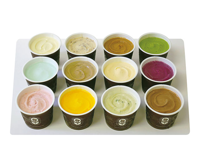 - タヒチバニラ・プレミアムチョコレート・ピスタチオ・ストロベリーミルク・清見オレンジ&マンゴー・クアトロフォルマッジ・アールグレイチョコチップ・キャラメルカフェ・カシスピーチ・雪塩ライムレモン・抹茶・ラムレーズン各100ml