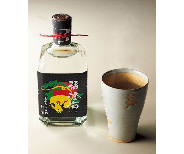 鹿児島の「伝統の継承」をテーマに焼酎造りの技を未来に伝える〈若潮酒造〉。「禰澄海(ねずみ)」の銘には、澄んだ海への願いが込められています。芋にはシルクスイートを使い、敷地内のトンネル貯蔵庫で6年熟成させた三越伊勢丹限定品です。