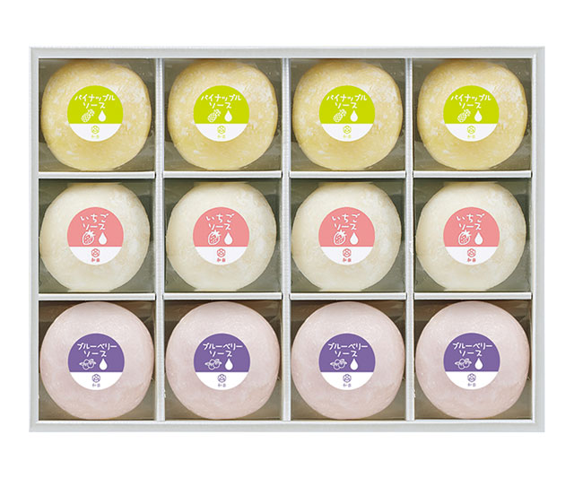 - 生クリーム大福(パイナップルソース・いちごソース・ブルーベリーソース各65g×各4)