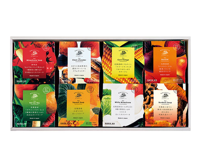 カップのままレンジで1分温めるだけで、手軽に食べられる国産野菜たっぷりのスープ。人気のフレーバーと新しいフレーバーを組合せた8種類のセットです。
