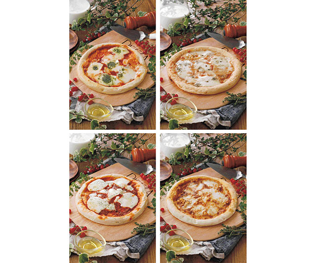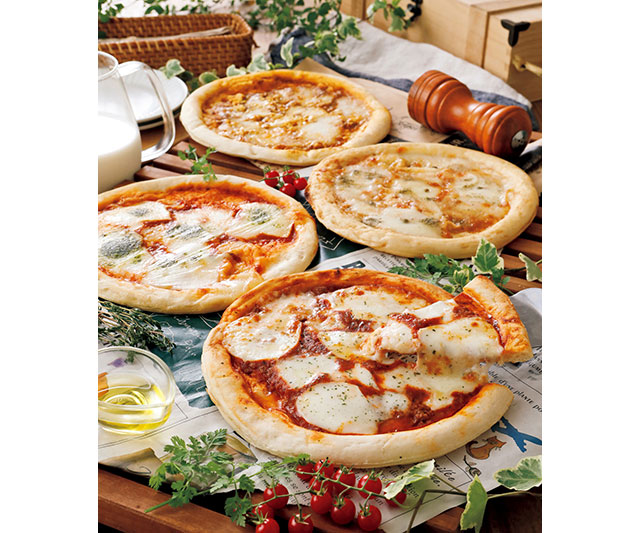 - チーズたっぷりピザ(マルゲリータ・和風山椒味・飛騨牛ボロネーゼ・ご当地カレー味各直径約19p)