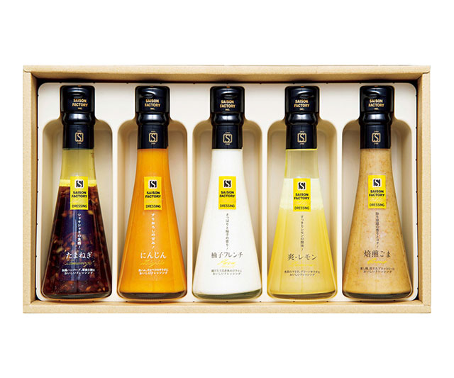 野菜の甘みを感じる人気のにんじん、銅釜で炒ったごまが香る焙煎ごまなど、素材の旨みを活かしたドレッシング5種のセットです。揚げ物にかけたり、魚介類とあわせてマリネにしたりと、さまざまな料理にもお使いいただけます。
