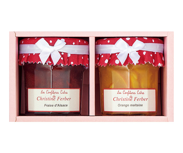 日本にコンフィチュールを広めた第一人者のクリスティーヌ・フェルベール氏。彼女が作り出すコンフィチュールは、果実の個性を引き出す果肉感のある仕上がりです。濃厚な甘みのいちごと、さっぱりとした味わいのマルテーズ品種オレンジの2種セットです。