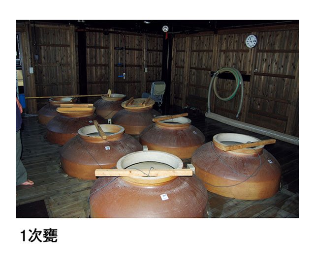 伝統の石蔵で長期熟成された芋焼酎を大事に甕壺に詰めて。