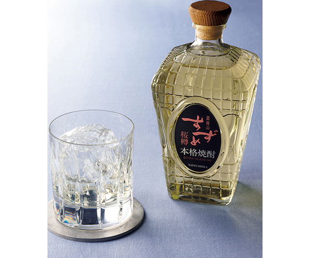 珍しい国産の桜樽で貯蔵した甘い香りが心地よく広がる麦焼酎。