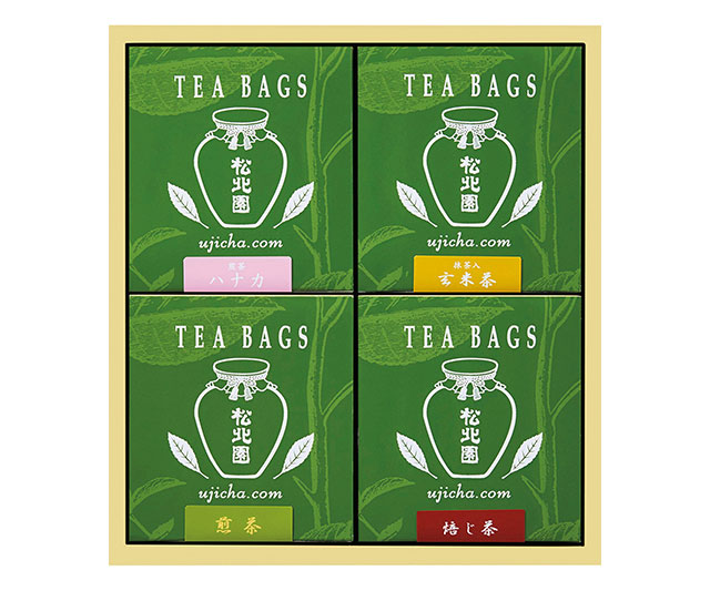 - ティーバッグ(煎茶「ハナカ」・煎茶・焙じ茶・抹茶入玄米茶各4g×各10)
