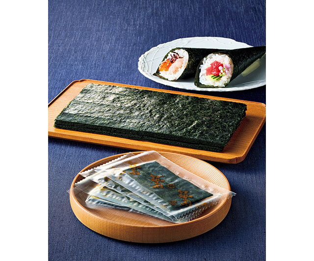 料亭や寿司の名店から信頼される味。パリパリの食感と薫り豊かな海苔。