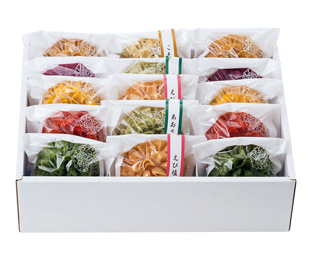 - プレーン・紫いも・かぼちゃ・トマト・ほうれん草・あおさ塩・えび塩×各2、ごま塩×1