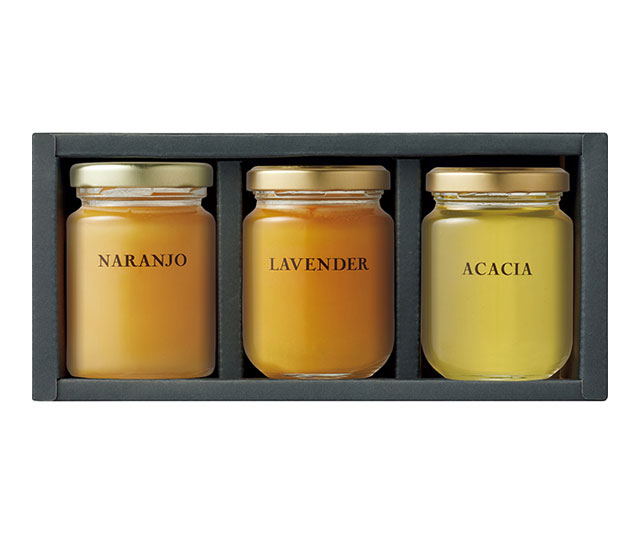 - はちみつ(オレンジ)125g/フランス製(採蜜国:スペイン)、はちみつ(ラベンダー)125g/日本製(採蜜国:ブルガリア)、はちみつ(アカシア)125g/日本製(採蜜国:ハンガリー)