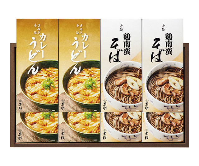 モチモチの食感が魅力の手延べ麺の詰合せです。カレーうどんと鶏南蛮そばは体を温めてくれる冬にぴったりの贈り物。だしの風味豊かなレトルトのつゆで、手軽にお召しあがりください。
