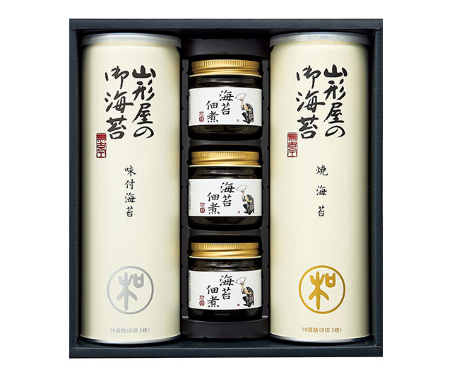 焼海苔・味付海苔各10袋詰(8切5枚)、海苔佃煮60g×3
