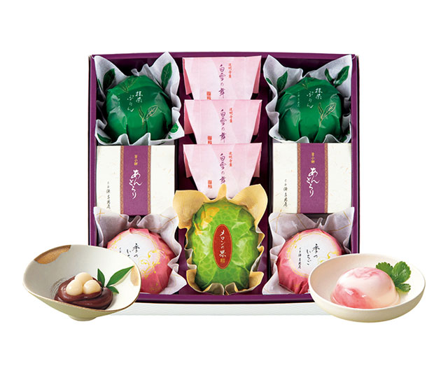 白雪の舞×3、あんとろり・季のいちご・抹茶ぷりん×各2、メロンの果×1