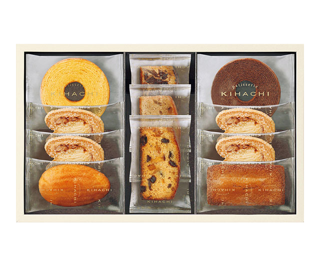 - フィナンシェ・はちみつマドレーヌ・ケークアングレ・マーブルケーク・マロンケーク×各1、バームクーヘン(プレーン・ショコラ×各1)、パルミエ×4
