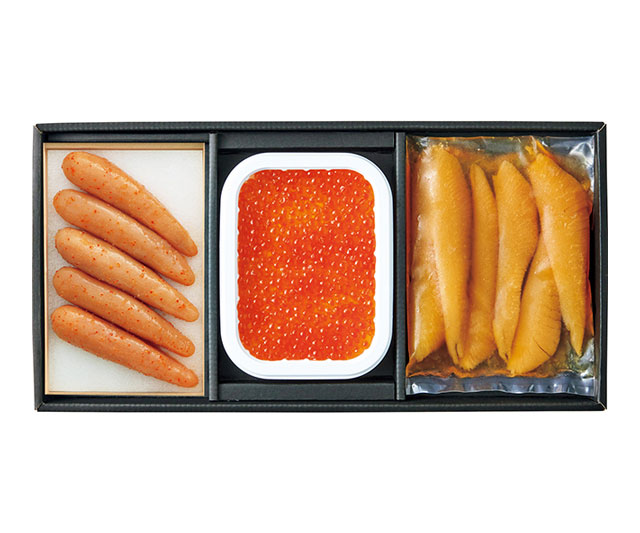 - 無着色辛子明太子150g、味付け数の子130g、いくら醤油漬70g(密封袋入)