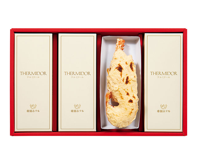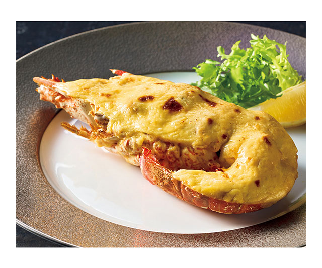 〈帝国ホテル〉の開業時より愛され続ける伝統のメニュー「テルミドール」をご紹介します。殻ごと使った海老に、白ワインの風味豊かなベシャメルソースをかけて仕上げたグラタンは、温めて盛り付けるだけで華やかなごちそうに。プリプリの海老の旨みと、濃厚でなめらかなソースが織りなす、美味なるハーモニーをお楽しみください。