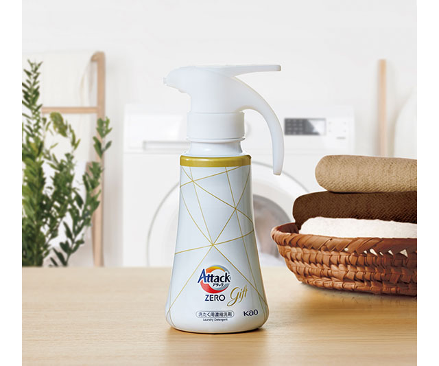 「洗浄力」と「環境への配慮」の両立を目指し、食用油を採取した後のアブラヤシの実を活用した洗浄成分「バイオIOS」を配合(*1)した「アタックZERO」。臭いの原因である「バイオフィルム(*2)」を根本洗浄(*3)し、落ちにくい汚れ、生乾きの臭いや洗剤残りまで、限りなく「ゼロ」に近づけます。使いやすい「ワンハンドボトル」と詰替用をセットにしました。 *1 「バイオIOS」以外の洗浄成分も配合。 *2 菌が作り出す多糖汚れのこと。 *3 汚れ落ちのメカニズム(根本)から考えた洗浄のこと。