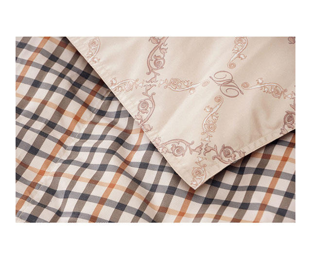 側地:ポリエステル85%・綿15%、詰物:ダウン70%・フェザー30%・0.3s/150×210p