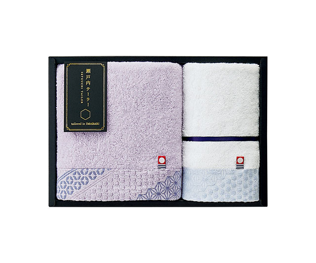 パープル:綿95%・ポリエステル3%・レーヨン2%、ホワイト:綿98%・レーヨン2%/フェイスタオル:約33×80p、ウォッシュタオル:約33×35p 今治タオルブランド認定番号:第2023−1202号
