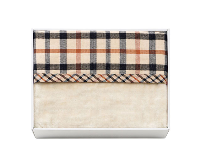 〈ダックス〉のハウスチェック柄やDDロゴを配した、シックなデザインの寝具です。