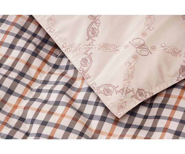 〈ダックス〉のハウスチェック柄やDDロゴを配した、シックなデザインの寝具です。