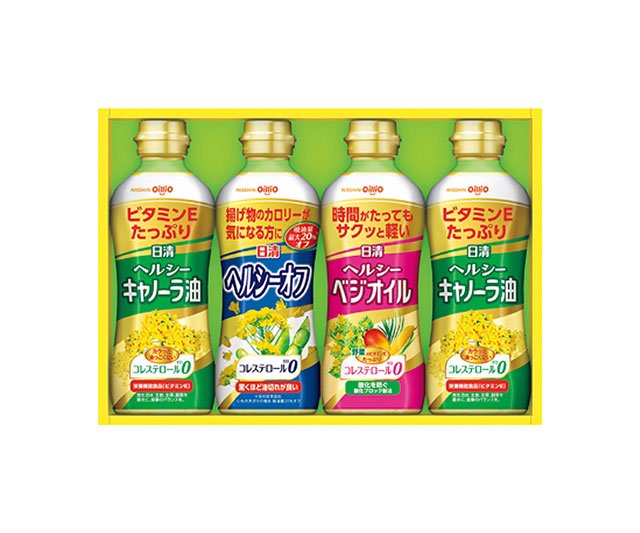 - ヘルシーキャノーラ油(栄養機能食品)×2、ヘルシーべジオイル・ヘルシーオフ×各1、各350g