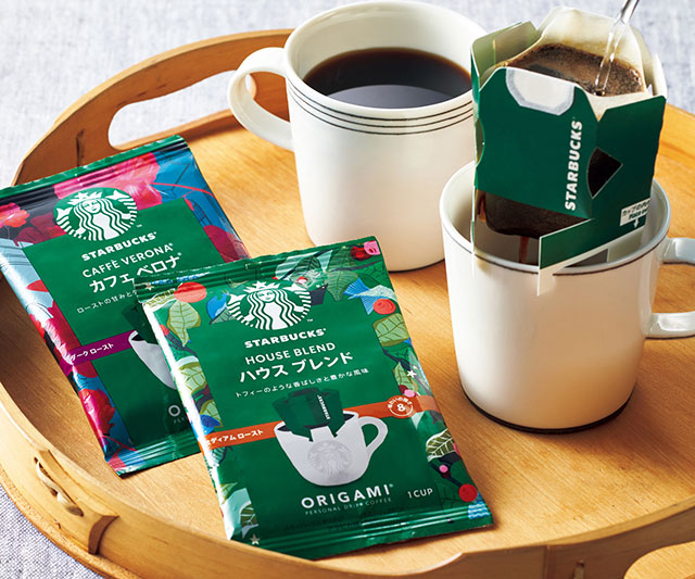 1杯ずつ美味しさを味わえるドリップタイプの〈スターバックス〉オリガミ。一滴一滴を丁寧に淹れる贅沢な時間を、異なる焙煎や豊富なフレーバーのコーヒーと一緒にお楽しみいただけます。