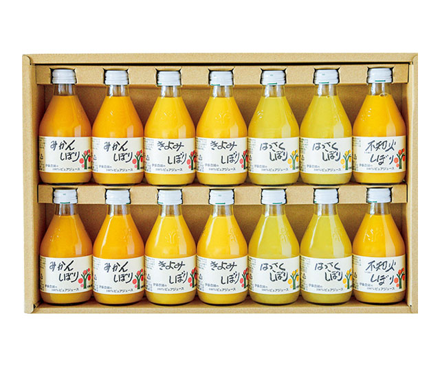 みかんしぼり・きよみしぼり・はっさくしぼり×各4、不知火しぼり×2、各180ml