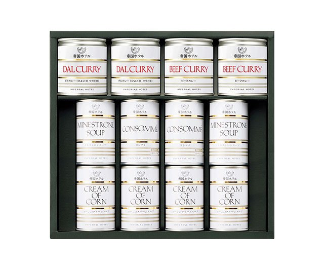 - コーンのクリームスープ×4、コンソメ・ミネストロンスープ×各2、各160g、ビーフカレー190g・ダルカレー(豆のカレー)180g×各2/プルトップ缶
