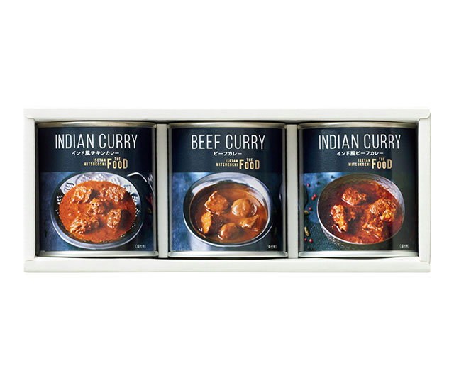 上品な味わいとバラエティーの豊かさで、多くの方に愛され続ける〈ミツコシイセタン ザ・フード〉。素材にこだわり、多種のスパイスで仕上げた「プレミアムカレー缶詰」をご用意いたしました。
